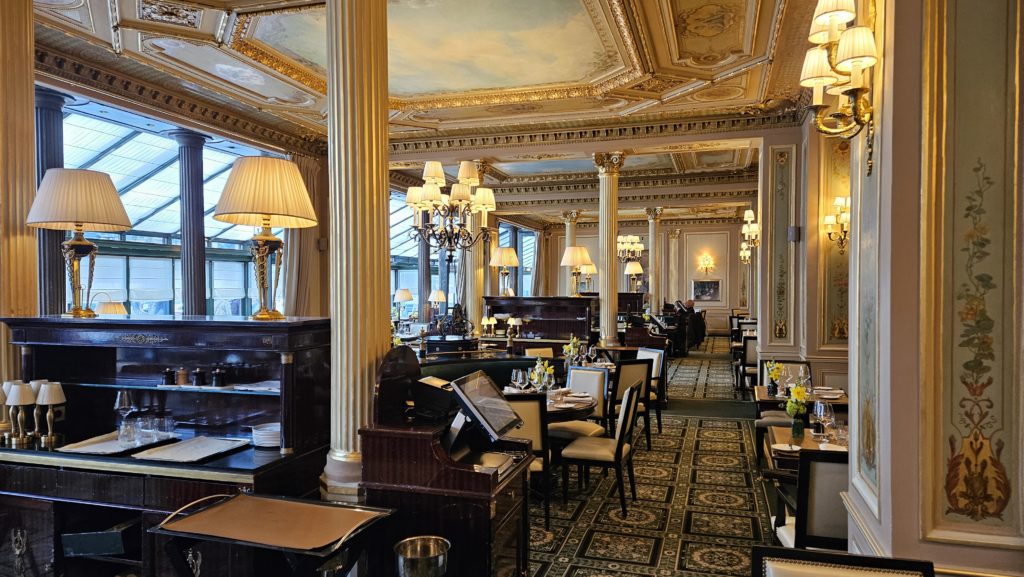 La grande salle du Café de la Paix semble être assez éloignée du monde ferroviaire, et pourtant :